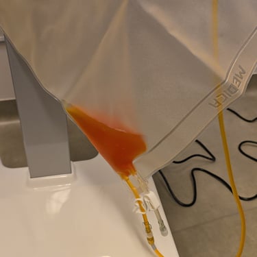 The purified plasma is returned to the body along with saline solution. The concentrated dirty plasma is collected in a bag and can be sent to a laboratory for analysis.
